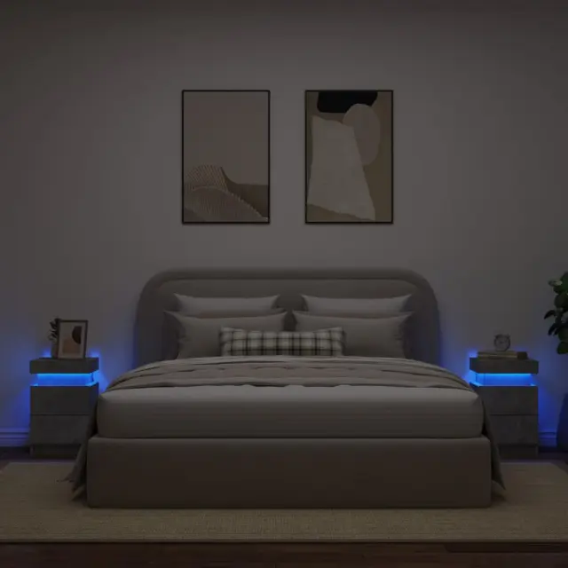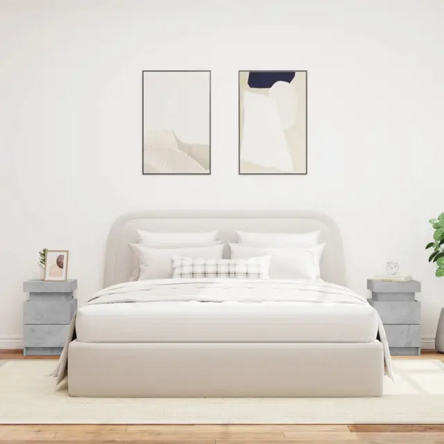 vidaXL Nočna omarica z LED lučkami 2 kosa betonsko siva 35x39x55 cm