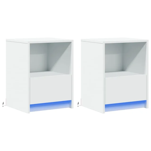 vidaXL Nočna omarica z LED lučkami 2 kosa bel inženirski les