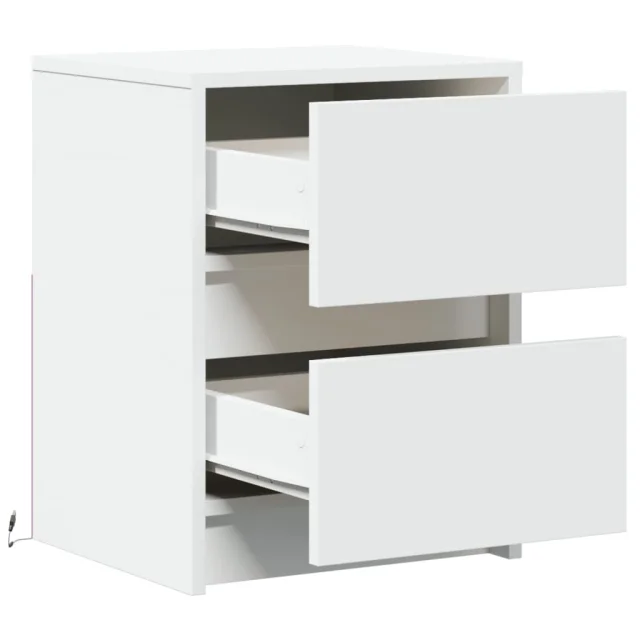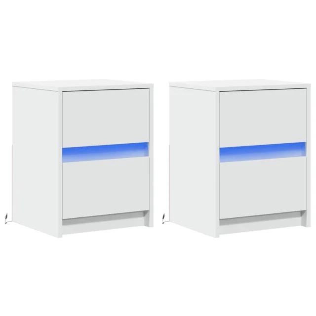 vidaXL Nočna omarica z LED lučkami 2 kosa bel inženirski les