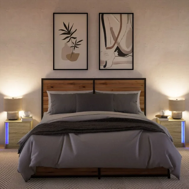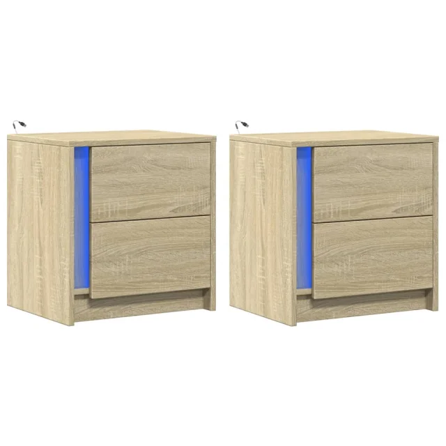vidaXL Nočna omarica z LED lučkami 2 kosa sonoma hrast inženirski les