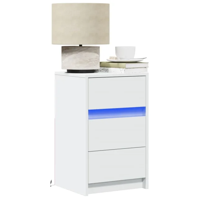 vidaXL Nočna omarica z LED lučkami bel inženirski les