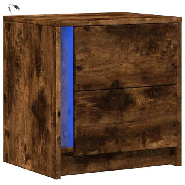 vidaXL Nočna omarica z LED lučkami dimljen hrast inženirski les
