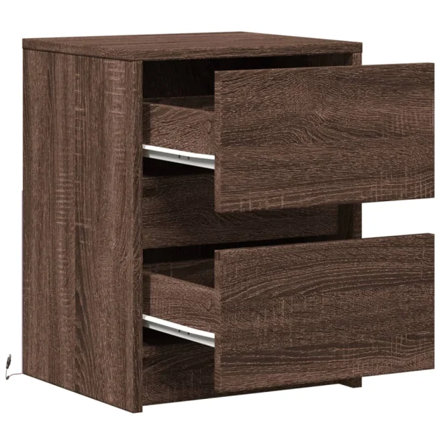 vidaXL Nočna omarica z LED lučkami rjavi hrast inženirski les