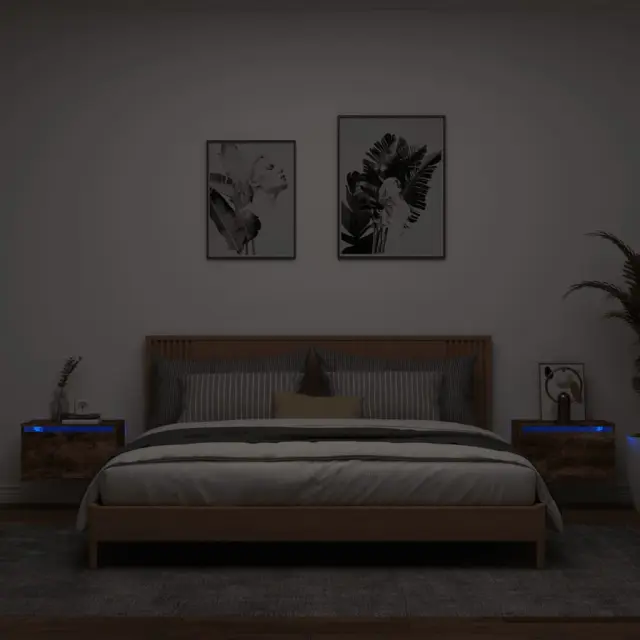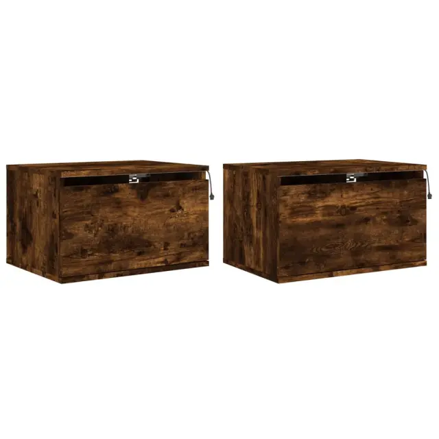 vidaXL Nočna stenska omarica z LED lučkami 2 kosa dimljen hrast