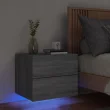 vidaXL Nočna stenska omarica z LED lučkami siva sonoma