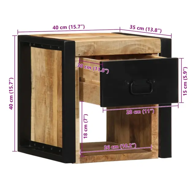 vidaXL Nočne omarice 2 kosa 40x35x40 cm Masivni neobdelan les Mango