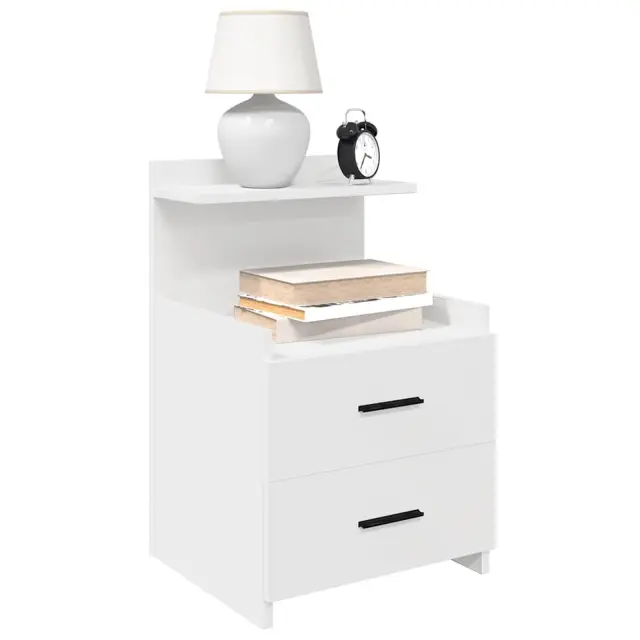• Obilo prostora za shranjevanje: Omarica ponuja veliko prostora za shranjevanje z dvema predaloma in odprto polico za shranjevanje, kar vam omogoča organiziranje in shranjevanje predmetov, kot so knjige, revije ali osebne stvari, s čimer bo vaša spalnica ostala urejena.