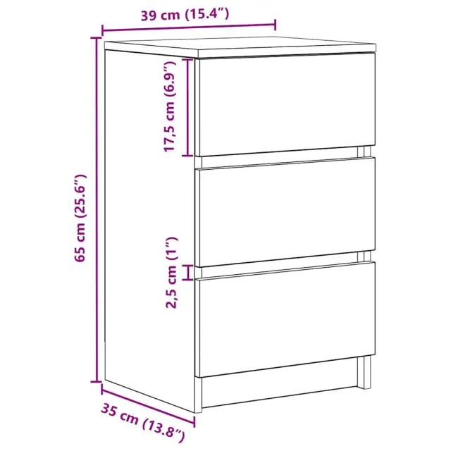vidaXL Nočne omarice s 3 predali 2 kosa dimljeni hrast 39x35x65 cm