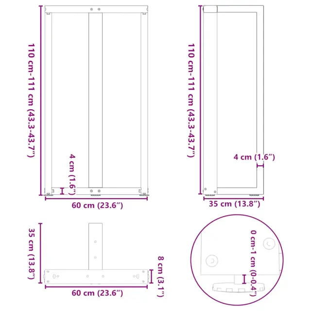 vidaXL Noge za barsko mizo v obliki črke T, 2 kosa, črne, 60x35x(110-111) cm, jeklo