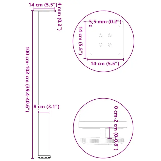 • Praktična oblika: Ta noga barske mize ima nastavljive nivelatorje, ki zagotavljajo stabilnost tudi na neravnih tleh in zmanjšujejo praske na tleh. Poleg tega ima nosilec predhodno izvrtane luknje in priložene vijake, s katerimi lahko pritrdite nogo na mizno površino (niso priloženi), kar olajša montažo.
