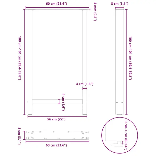 vidaXL Noge za barsko mizo iz naravnega jekla 2 kosa 60 x (100-101) cm jeklo