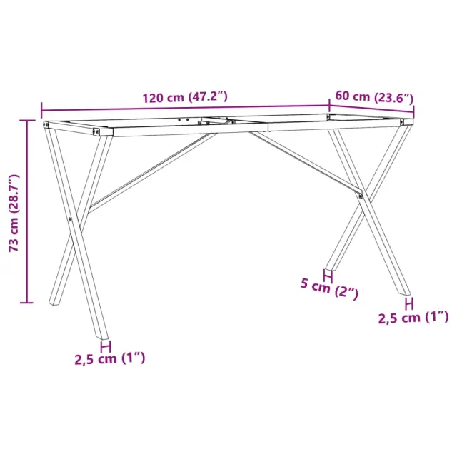 vidaXL Noge za jedilno mizo X-okvir 120x60x73 cm jeklo