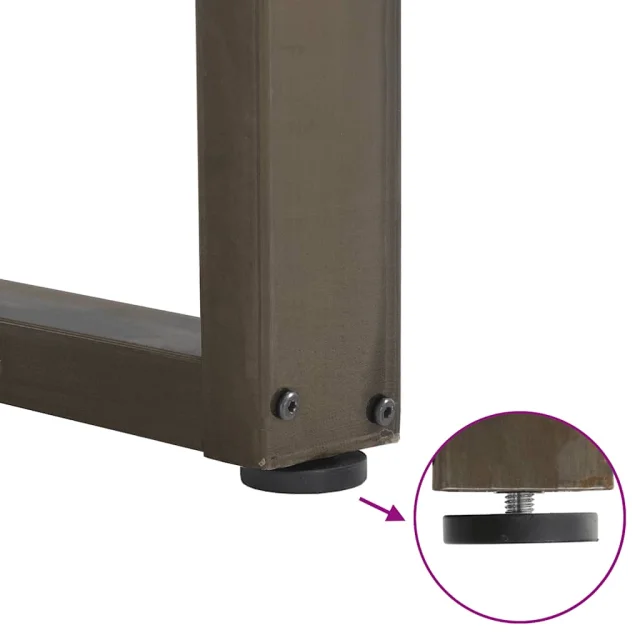 • Praktična oblika: Noga jedilne mize ima nastavljive nivelatorje, ki zagotavljajo stabilnost tudi na neravnih tleh in zmanjšujejo praske na tleh. Poleg tega ima nosilec predhodno izvrtane luknje in priložene vijake, s katerimi lahko nogo pritrdite na mizno površino (niso priloženi), kar olajša montažo.