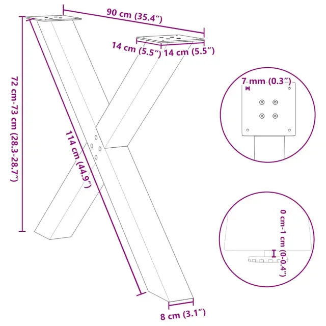 vidaXL Noge za jedilno mizo v obliki črke X, 3 kosi, bele barve, 90 x (72-73) cm, jeklo