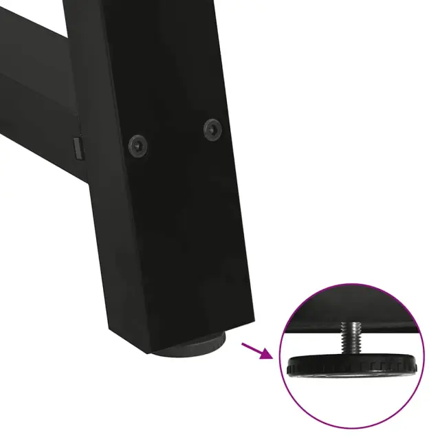 • Praktična oblika: Noga jedilne mize ima nastavljive nivelatorje, ki zagotavljajo stabilnost tudi na neravnih tleh in zmanjšujejo praske na tleh. Poleg tega ima nosilec predhodno izvrtane luknje in priložene vijake, s katerimi lahko nogo pritrdite na mizno površino (niso priloženi), kar olajša montažo.
