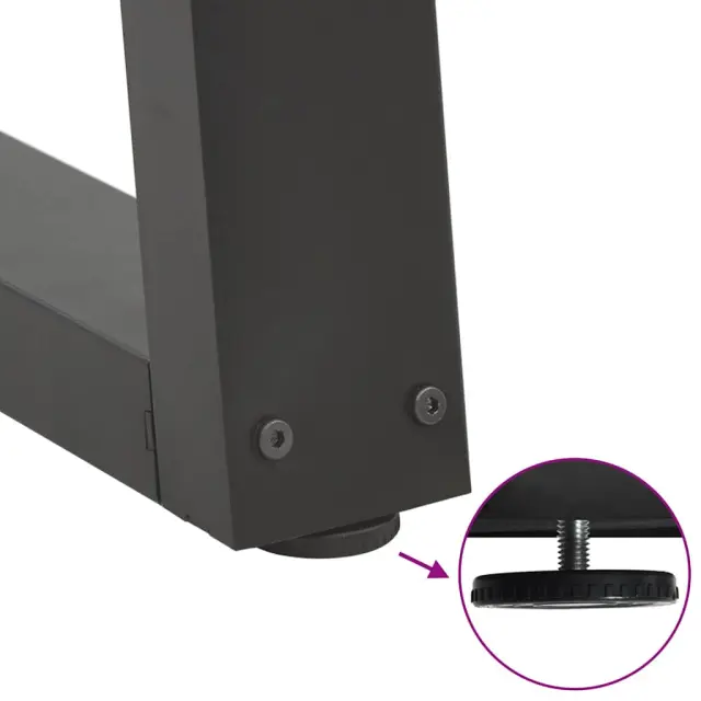 • Praktična oblika: Noga jedilne mize ima nastavljive nivelatorje, ki zagotavljajo stabilnost tudi na neravnih tleh in zmanjšujejo praske na tleh. Poleg tega ima nosilec predhodno izvrtane luknje in priložene vijake, s katerimi lahko nogo pritrdite na mizno ploščo (niso priloženi), kar olajša montažo.