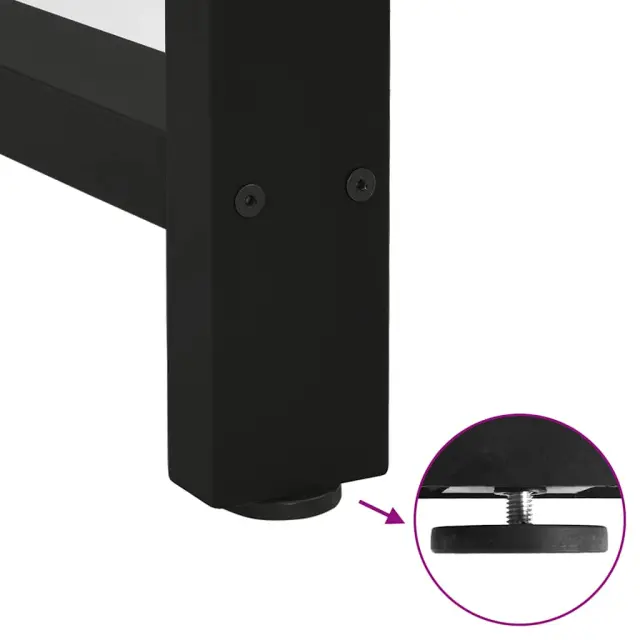 • Praktična oblika: Noga jedilne mize ima nastavljive nivelatorje, ki zagotavljajo stabilnost tudi na neravnih tleh in zmanjšujejo praske na tleh. Poleg tega ima nosilec predhodno izvrtane luknje in priložene vijake, s katerimi lahko nogo pritrdite na mizno površino (niso priloženi), kar olajša montažo.
