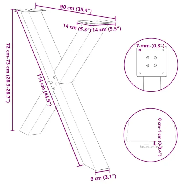 vidaXL Noge za jedilno mizo v obliki črke X, 3 kosi, črne, 90 x (72-73) cm, jeklo