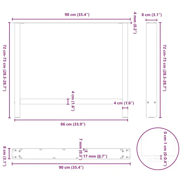 vidaXL Noge za jedilno mizo iz naravnega jekla 2 kosa 90 x (72-73) cm jeklo