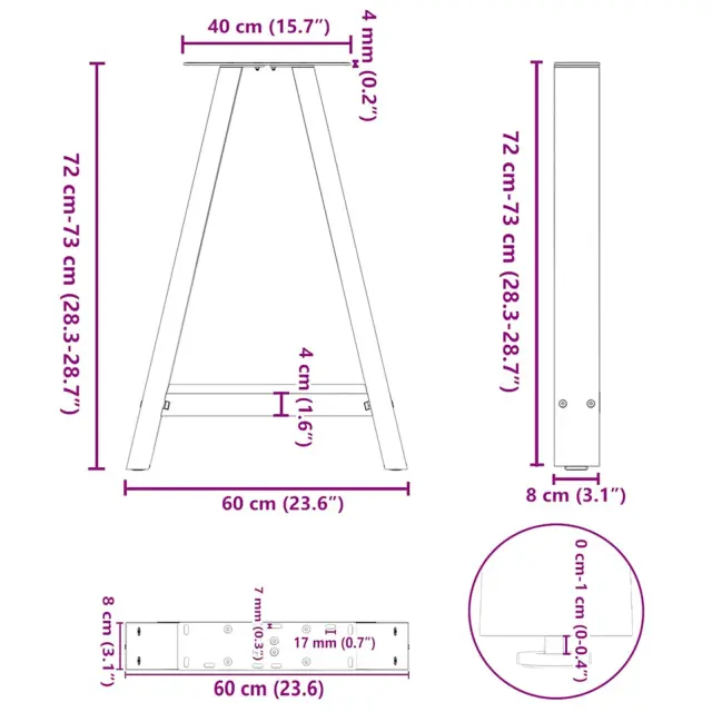 vidaXL Noge za jedilno mizo v obliki črke A, 2 kosa, 60 x (72-73) cm, jeklo
