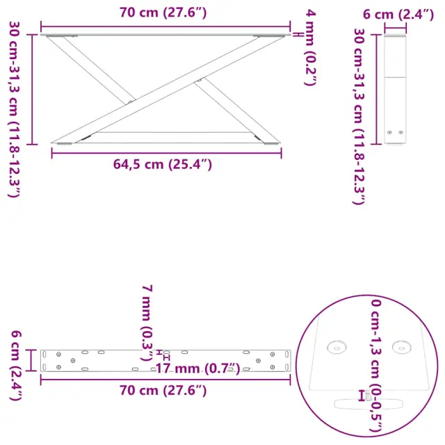 vidaXL Noge za klubsko mizico 2 kosa bele 70 x (30-31,3) cm jeklo
