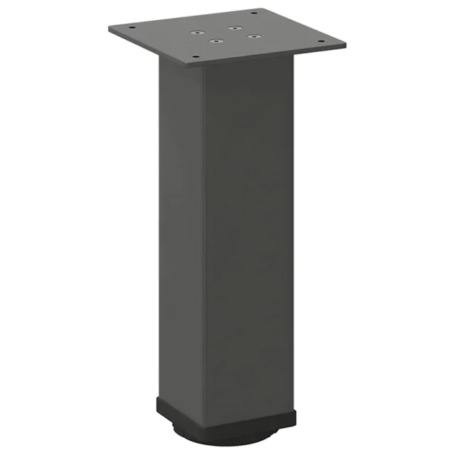 • Praktična oblika: Noga klubske mizice ima nastavljive nivelatorje, ki zagotavljajo stabilnost tudi na neravnih tleh in zmanjšujejo praske na tleh. Poleg tega ima nosilec predhodno izvrtane luknje in priložene vijake, s katerimi lahko pritrdite nogo na mizno površino (niso priloženi), kar olajša montažo.