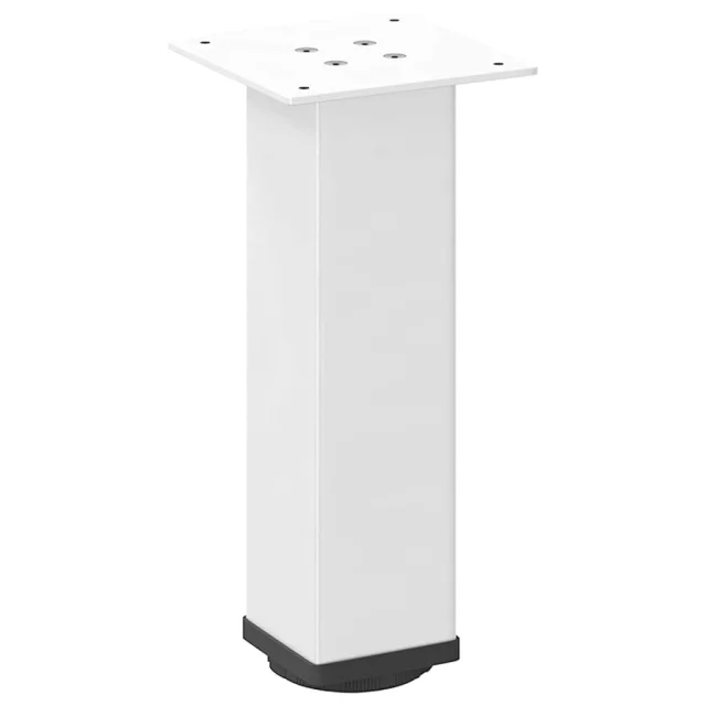 • Praktična oblika: Noga klubske mizice ima nastavljive nivelatorje, ki zagotavljajo stabilnost tudi na neravnih tleh in zmanjšujejo praske na tleh. Poleg tega ima nosilec predhodno izvrtane luknje in priložene vijake, s katerimi lahko pritrdite nogo na mizno površino (niso priloženi), kar olajša montažo.