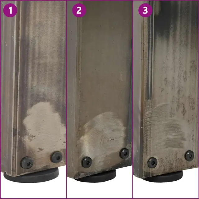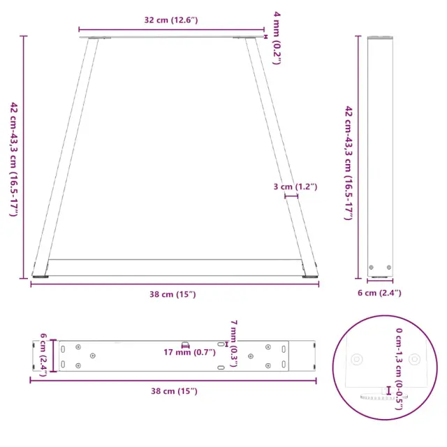 • Praktična oblika: Noga za klubsko mizico ima nastavljive nivelatorje, ki zagotavljajo stabilnost tudi na neravnih tleh in zmanjšujejo praske na tleh. Poleg tega ima nosilec predhodno izvrtane luknje in priložene vijake, s katerimi lahko nogo pritrdite na mizno ploščo (niso priloženi), kar olajša montažo.