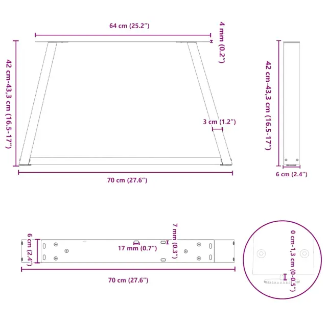 • Praktična oblika: Noga za klubsko mizico ima nastavljive nivelatorje, ki zagotavljajo stabilnost tudi na neravnih tleh in zmanjšujejo praske na tleh. Poleg tega ima nosilec predhodno izvrtane luknje in priložene vijake, s katerimi lahko nogo pritrdite na mizno ploščo (niso priloženi), kar olajša montažo.