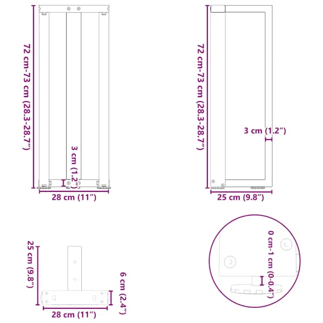 • Trpežen material: Ta kovinska noga mize je izdelana iz prašno barvanega jekla, zaradi česar je robustna in dolgo obstojna.