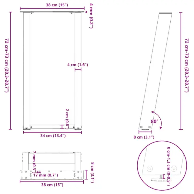 vidaXL Noge za konzolno mizico v obliki črke U 2 kosa antracitne 38 x (72-73) cm jeklo