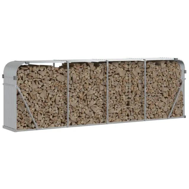 vidaXL Nosilec za polena srebrn 300x45x100 cm pocinkano jeklo