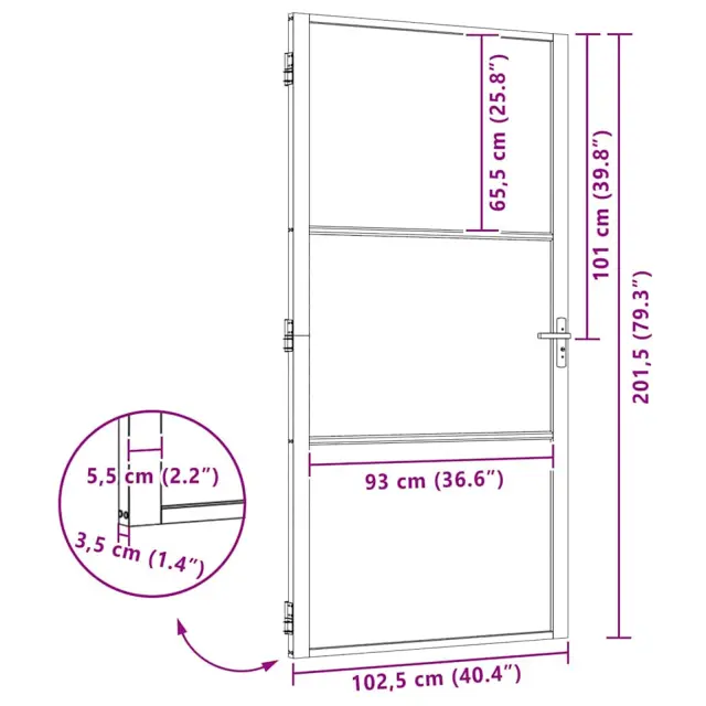 vidaXL Notranja vrata Črna 102.5 x 201.5 cm Kaljeno steklo in aluminij