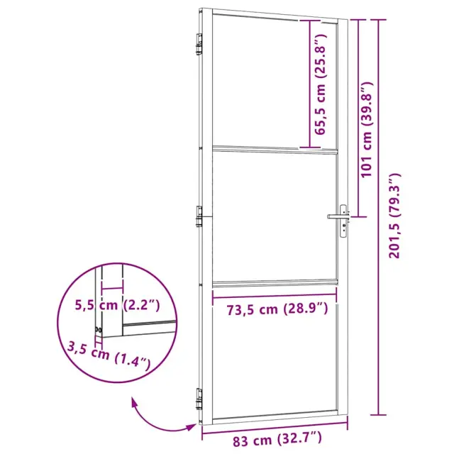 vidaXL Notranja vrata Črna 83 x 201.5 cm Kaljeno steklo in aluminij