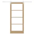 Ta moderna notranja vrata ponujajo šik in brezšiven prehod med prostori, ki združuje preprostost in eleganco. Narejena so iz trdnega borovega lesa, gladka tekstura in stekleni paneli s peskanjem ustvarjajo sofisticirano vzdušje, primerno za sodobne dnevne sobe, kuhinje in spalnice. Z drsnim mehanizmom povečujejo zasebnost, a ne ogrožajo prostorskega izkoristka, kar jih naredi odlične za različne domače prostore.