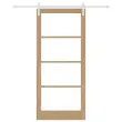 Ta moderna notranja vrata ponujajo šik in brezšiven prehod med prostori, ki združuje preprostost in eleganco. Narejena so iz trdnega borovega lesa, gladka tekstura in stekleni paneli s peskanjem ustvarjajo sofisticirano vzdušje, primerno za sodobne dnevne sobe, kuhinje in spalnice. Z drsnim mehanizmom povečujejo zasebnost, a ne ogrožajo prostorskega izkoristka, kar jih naredi odlične za različne domače prostore.