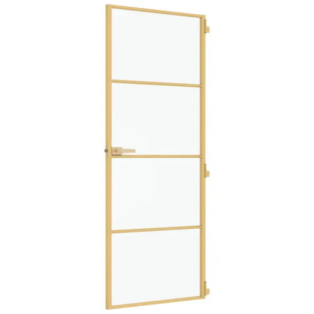 vidaXL Notranja vrata ozka zlata 76x201,5cm kaljeno steklo in aluminij