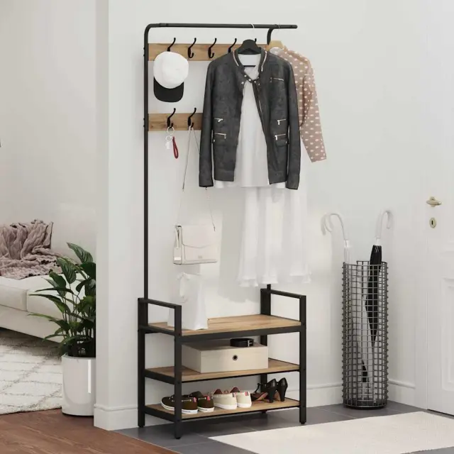 Ta moderni obešalnik s shranjevanjem združuje funkcionalnost in stil, zato je must-have v vsakem bivalnem prostoru. Z elegantno pravokotno zasnovo in gladko površino je tako praktičen kot stilski dodatek za vaš dom. Pomaga vam, da ostanete organizirani, s ogromnim prostorom za shranjevanje na različnih nivojih in področjih, idealen za družine ali kogarkoli, ki ceni prostor in učinkovitost. Pametno črn okvir in kovinske noge mu dajo minimalističen videz, ki se odlično sklada z modernim dekorjem.