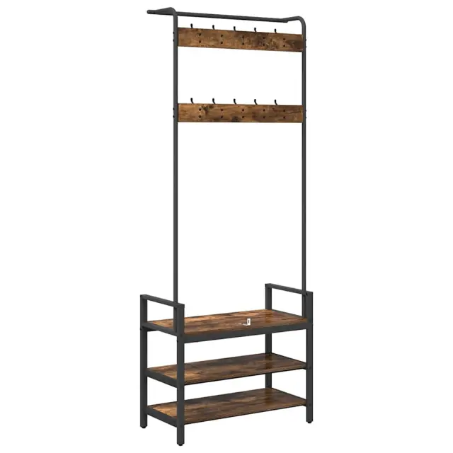 vidaXL Obešalnik za plašče s polico Dimljeni hrast 75 x 34 x 184 cm