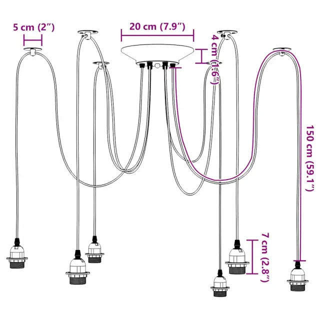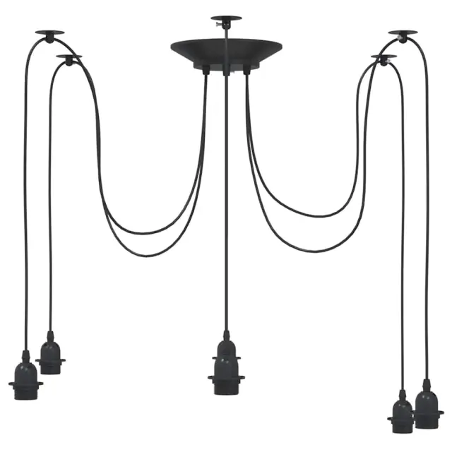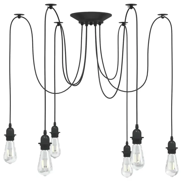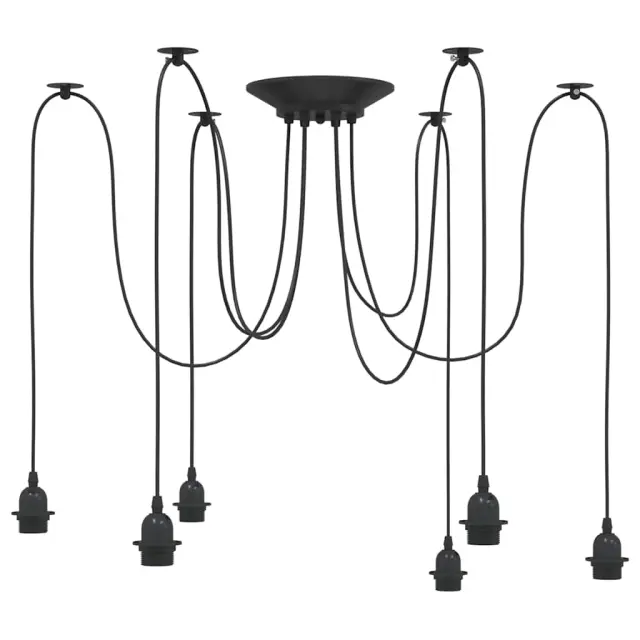 vidaXL obesek svetilka s 6 nosilci E27 Črna kovina