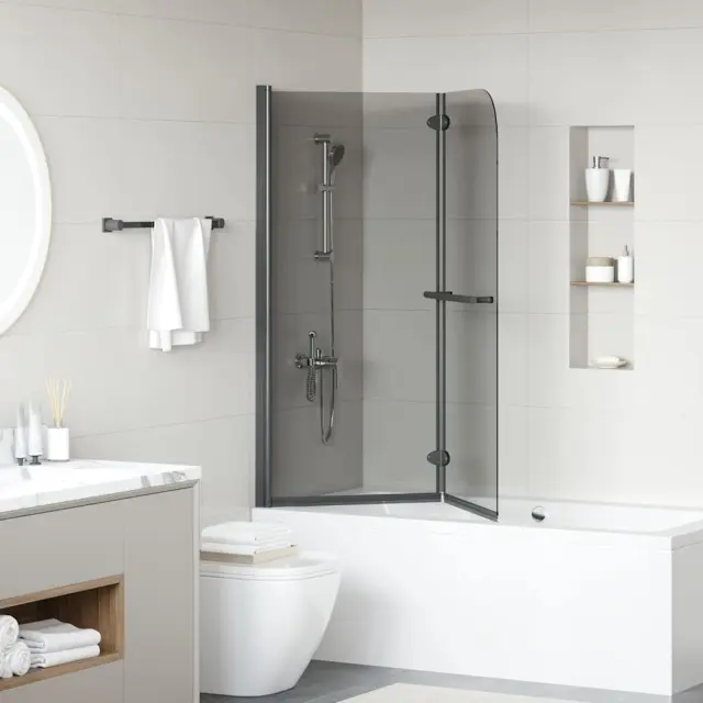 vidaXL Obloga za tuš Črna 95 x 140 cm ESG steklo in aluminij