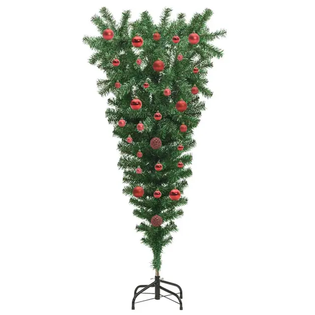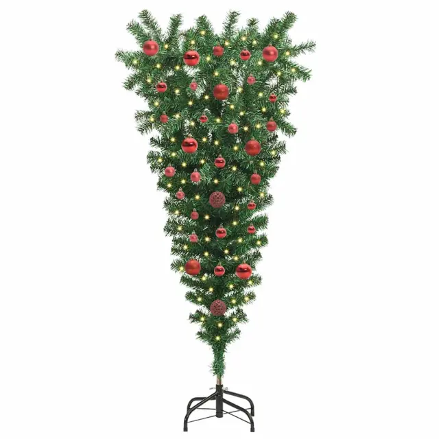vidaXL Obratno umetno osvetljeno božično drevo s setom kroglic 120 cm