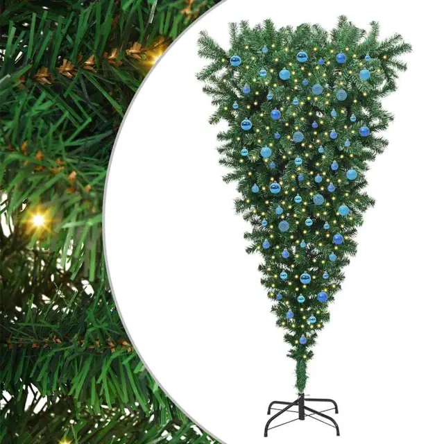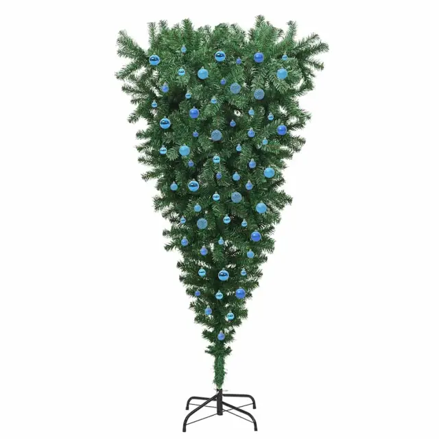 vidaXL Obrnjen umetni božični drevesec s kompletom kroglic 240 cm