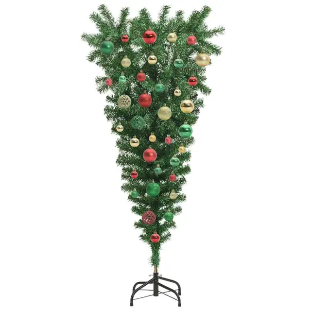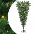 vidaXL Obrnjen umetni predhodno osvetljen božični drevesec z naborom žogic