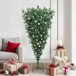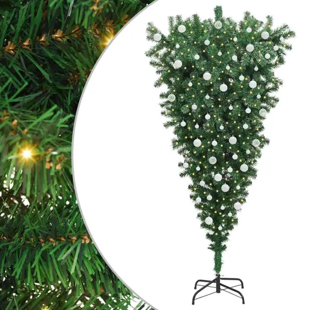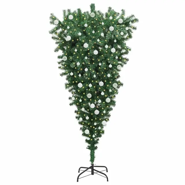 vidaXL Obrnjen umetni predhodno osvetljen božični drevesec s kompletom krogel