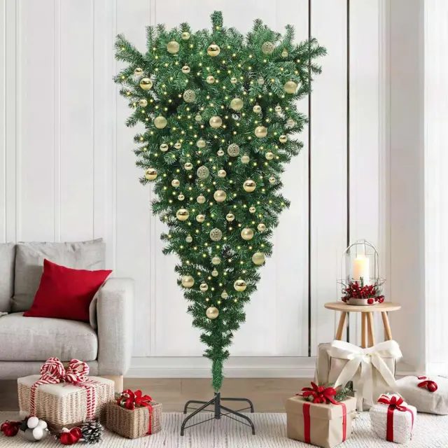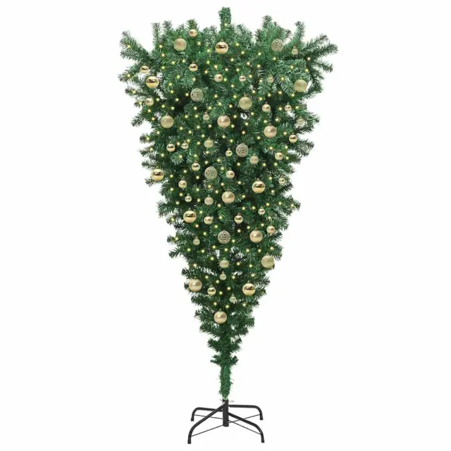 vidaXL Obrnjen umetni predhodno osvetljen božičnik s setom kroglic