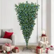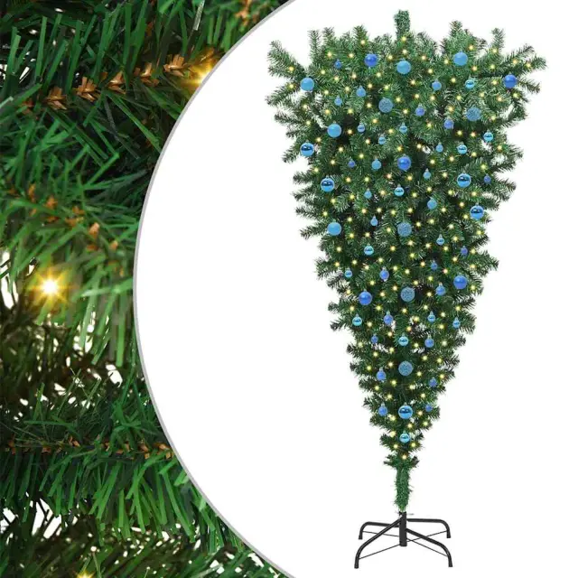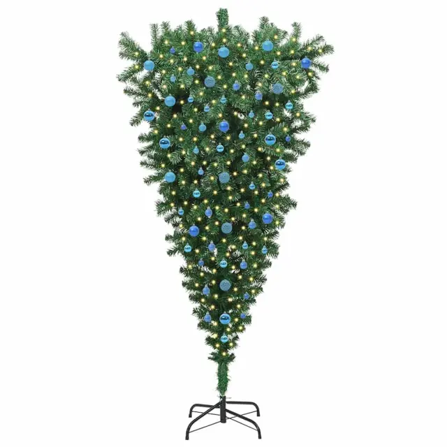 vidaXL Obrnjena umetna božična jelka s svetlobnim sistemom in kompletom kroglic