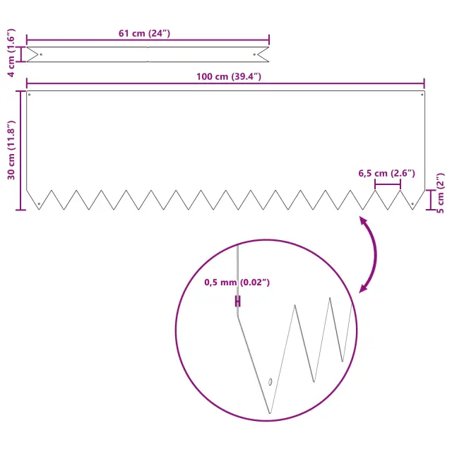 Ta set 20 obrob za trato je narejen iz kakovostnega jekla z izpostavljenimi vremenskimi vplivi in je zasnovan, da vašim zunanjim prostorom doda edinstven pridih. Rjava barva prinaša naravno vzdušje zunanjim notranjim prostorom in deluje kot praktična meja za vašo krajinsko oblikovanje.