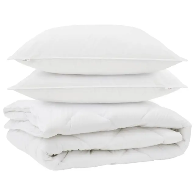 • Vključene komponente Paket vključuje eno posteljnino za vse sezone in dve blazini. Te komponente ustvarjajo usklajen sistem spanja, kar vam omogoča harmonično okolje za spanje. Blazine, izdelane iz poliestra, nudijo pravo mešanico mehkobe in podpore, da nežno podpirajo vašo glavo in izboljšajo kakovost vašega spanja.