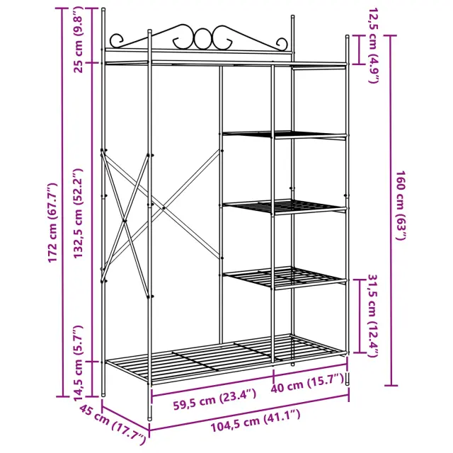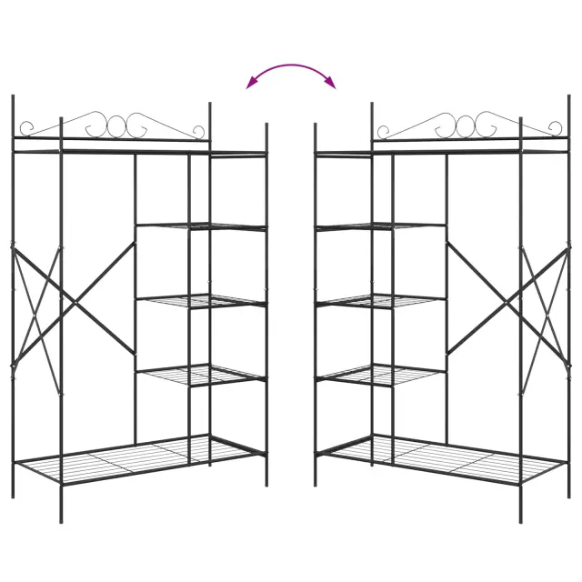 Ta moderna odprta omara ponuja elegantno rešitev za shranjevanje v spalnicah ali garderobnih sobah. Minimalistična zasnova vključuje čiste linije in gladek mat zaključek, ki doda pridih elegance. Zasnovana je za maksimalno funkcionalnost, kar pomeni, da se brez težav vklopi v različne stile notranjosti. Ima več žičnatih polic, ki zagotavljajo dovolj prostora za shranjevanje oblačil in dodatkov, trden okvir pa ji daje dolgoživost. Njena preprostost skupaj z obsežnim prostorom jo naredi idealno za organizacijo stvari.